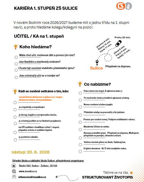 1. Učitel / učitelka na 1. stupni ZŠ