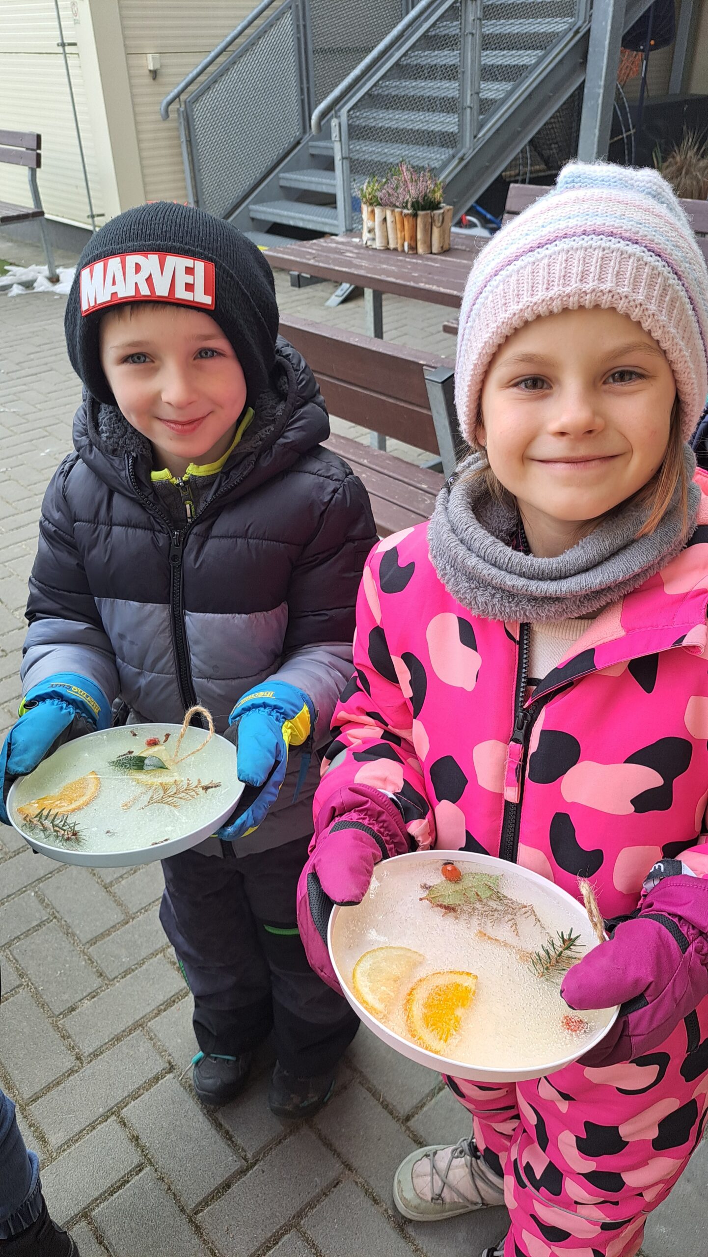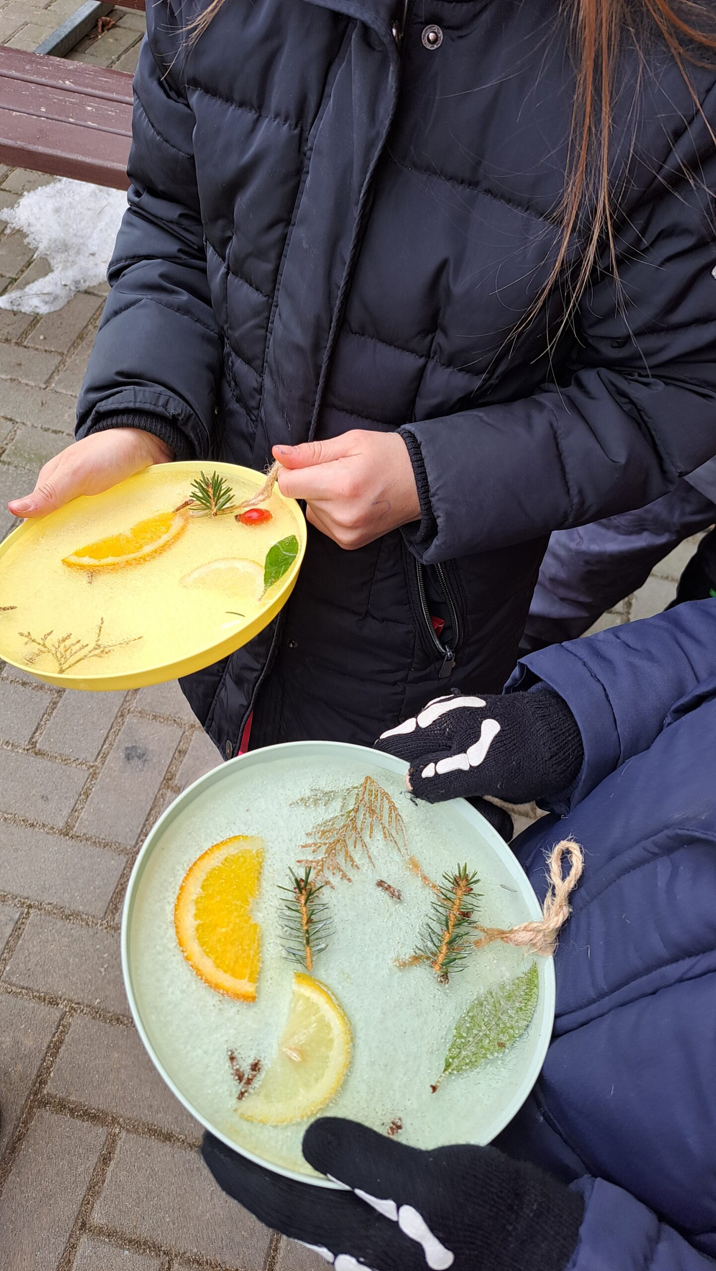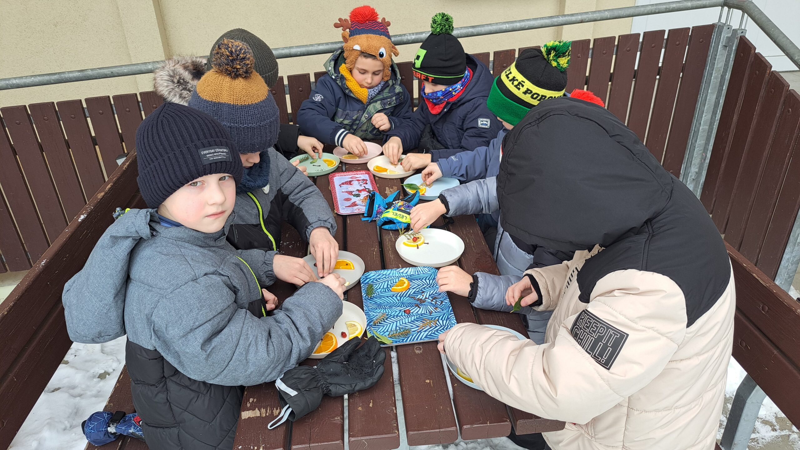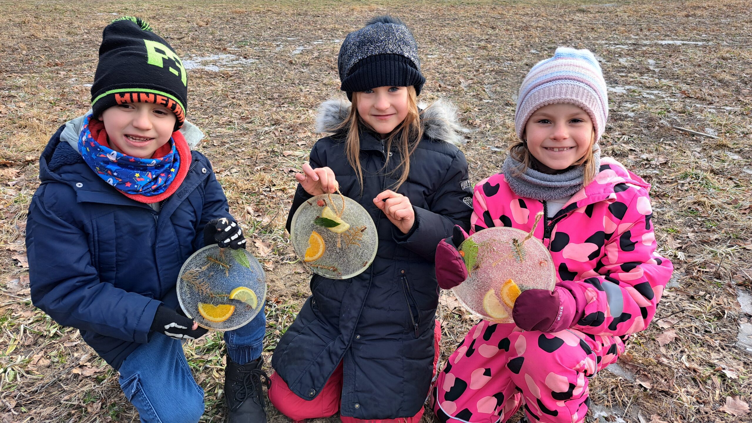 Mrazivé dny jsme s prvňáčky využili k experimentování. Sledovali jsme, jak se voda mění v led a s pomocí přírodnin jsme vykouzlit krásné ledové ozdoby.