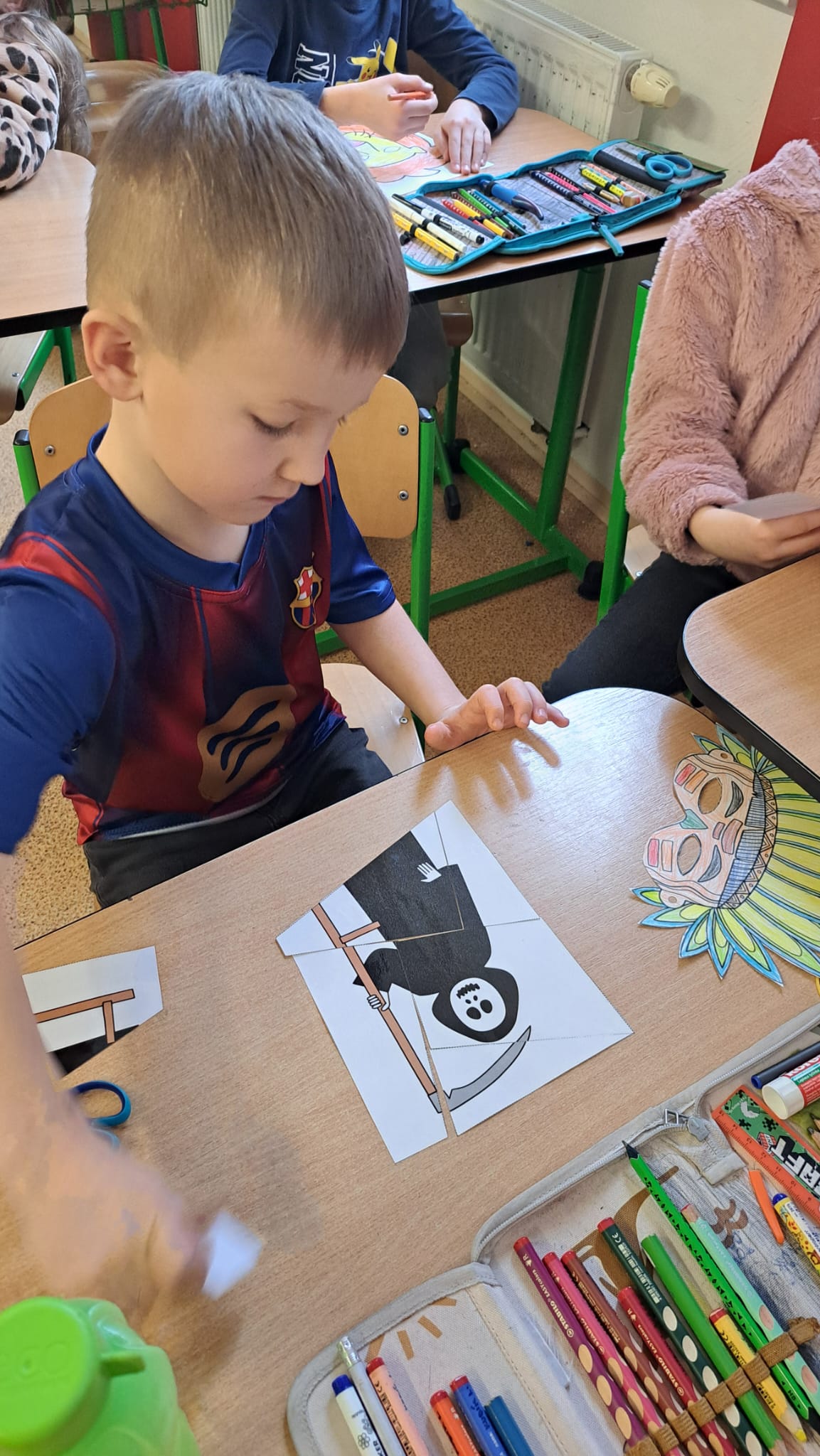 Dnešek se nesl v duchu připomínky státního sváktu 28.10., poznání nových žáků, spolupráce a radosti z vytvořených prací. Společně jsme si zazpívali státní hymnu, děti sdílely vlastní znalosti o Československu a jeho vzniku. Třeťáci četli prvňáčkům zajímavosti a pak společně doplňovali pracovní listy, vybarvovali vlajku a státní znak a skládali puzzle Prahy. Děti byly velmi aktivní a nadšené a samy hodnotily, že je to moc bavilo a byl to jeden z nejlepších dnů ve škole.:)