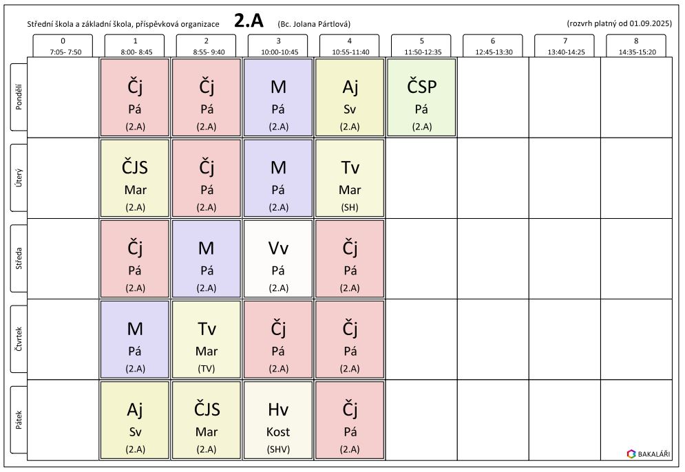 Organizace školního roku 2025/26